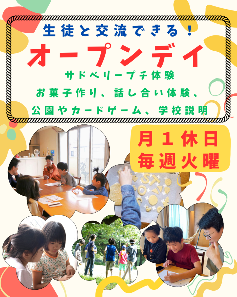 サドベリースクールをプチ体験しませんか?生徒の様子をご覧いただいたり、お子様が生徒と一緒に過ごせる時間、学校説明など選べます。親御さんのみも歓迎です。