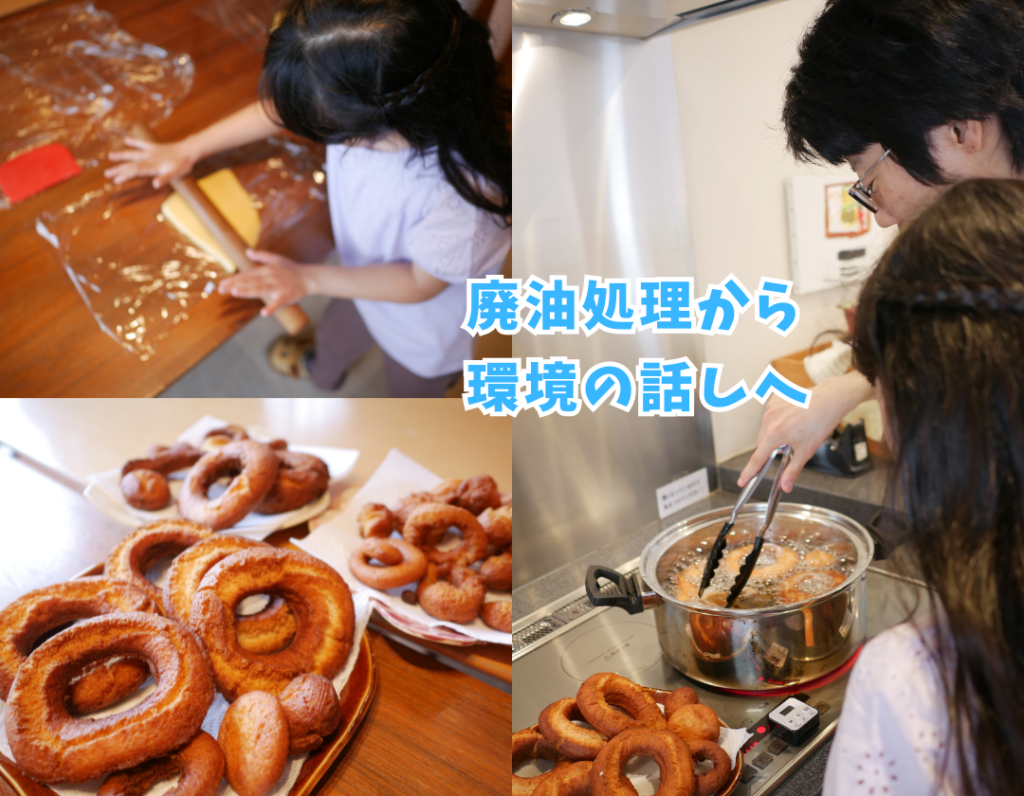 それぞれがドーナツの材料を買ってくることを決める時に、廃油処理剤が必要なことを話しました。そして本日ドーナツを揚げ終わった後に、皆で廃油処理剤を油に投入しながら話しました。
