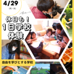 「学校って、こんなに自由でいいんだ!」 そんな発見がつまったオープンデイを開催します。生徒たちが自分で決め、創… 続きを読む: 【イベント】4/18(土)オープンデイ 参加者受付中!